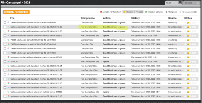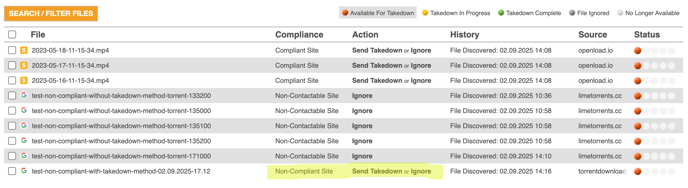 They may appear under Files – Available for Takedown or Files – Takedown In Progress (see screenshots below).